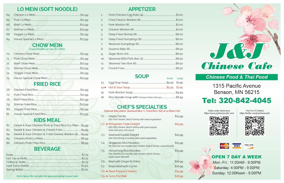 Overall, J&J Chinese Cafe offers a well-rounded menu with something for every taste, combining familiar favorites with exciting specialties, all at reasonable prices.