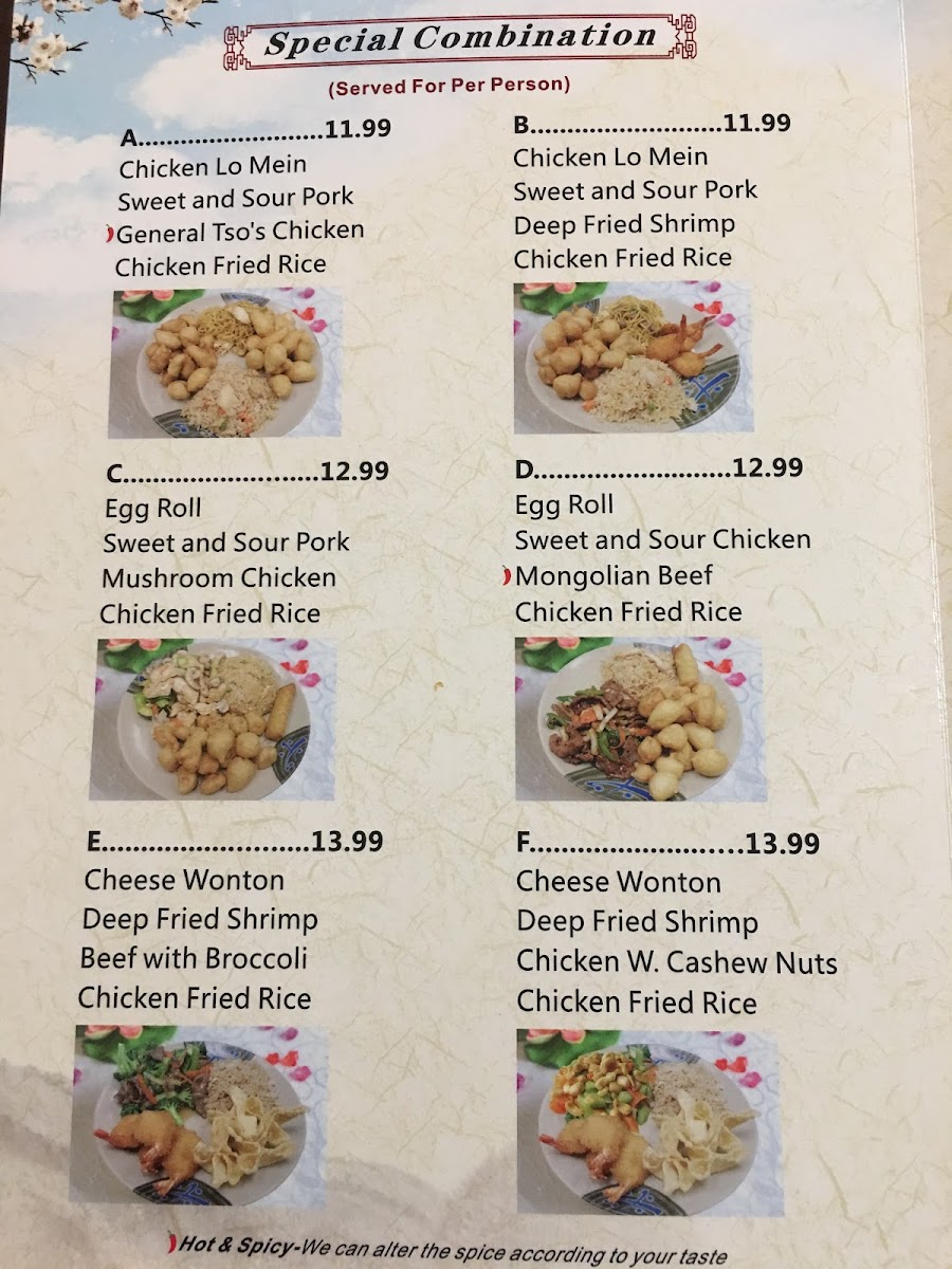 For soup lovers, the restaurant offers comforting bowls such as Egg Drop Soup, Hot Sour Soup, and Wonton Soup, each priced at $2.99, or you can try the Rice Noodles Soup for a slightly different flavor. If you're looking for a more specialized dish, their Chef's Specialties like Happy Family, Mongolian Triple Delight, and Seafood Double Delight are popular choices, with the price typically ranging around $12.99-$14.99.